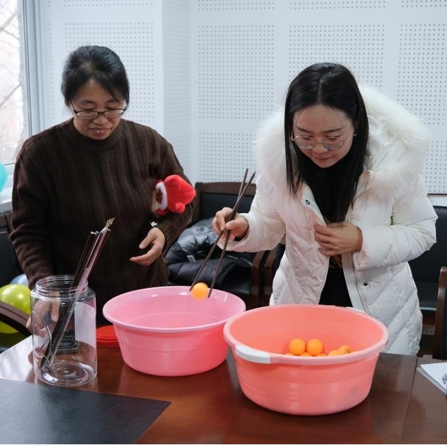 在联欢活动中,各系、中心、办公室教职工用饱满的情感分别演唱了《我和我的祖国》《歌唱祖国》等歌曲,用真情歌唱伟大祖国、共迎美好明天。现场气氛热烈欢快。老师们兴致勃勃地参加了“比比划划”、贴鼻子、夹乒乓球、猜灯谜、套圈、写福字、下象棋等丰富多彩的游艺活动。在活动中,老师们愉悦了心情、沟通了思想、交流了情感,激发了为学院发展再立新功、谱写新篇的劲头。