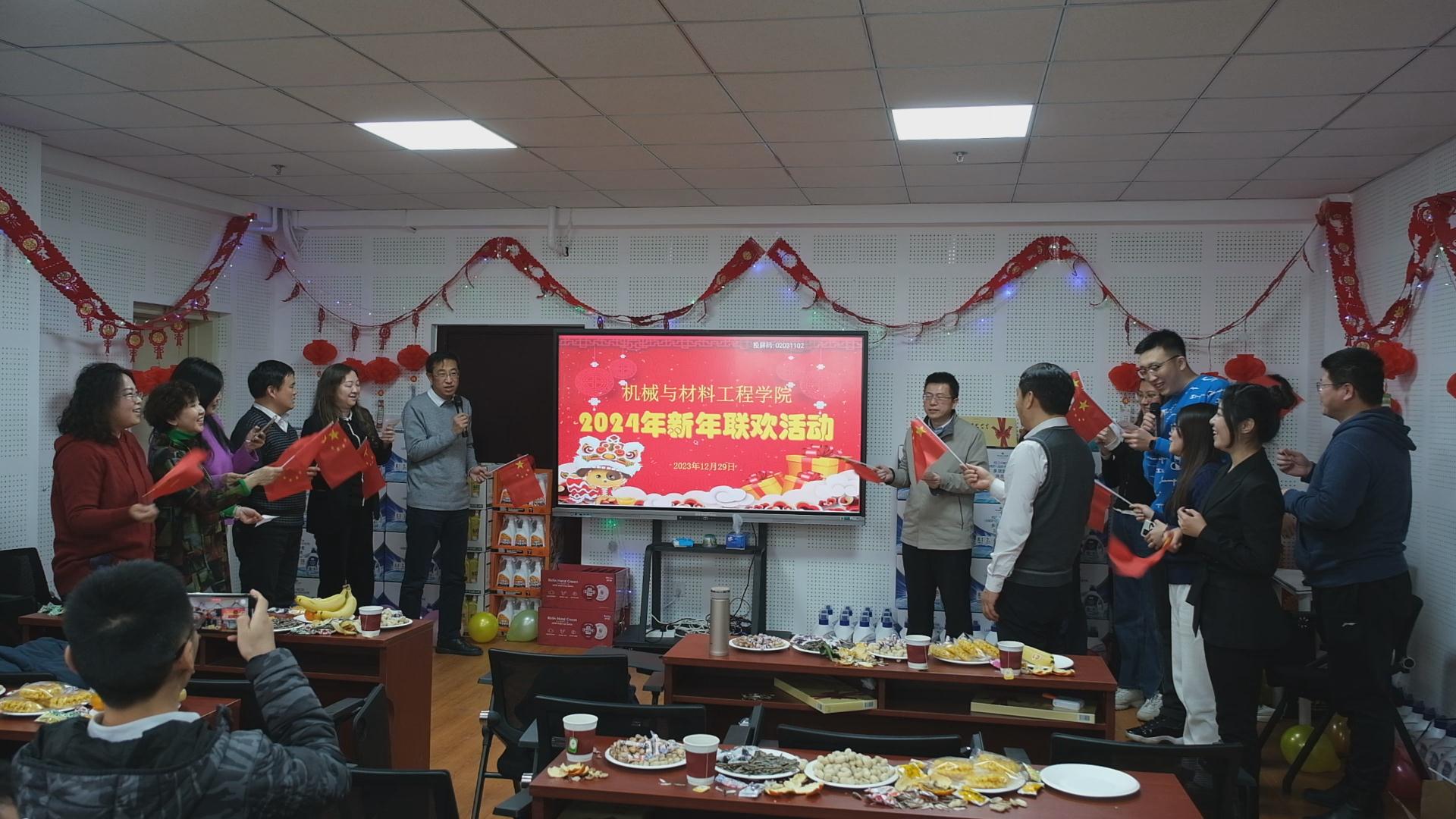 在联欢活动中,学院党委书记王文革代表学院向全院教职工致以新年的问候和诚挚的祝福,对过去一年全体教职工的辛勤付出和默默奉献表示衷心感谢!2023年,是全面贯彻党的二十大精神的开局之年,也是best365官方网站登录入口聚力扬帆、行稳致远的奋进之年。在老师们的共同努力下,学院事业实现了稳步发展,教学、科研、人才培养、学科建设、教师队伍建设、基层党建等工作都取得良好成效,为未来发展奠定坚实基础。2024年,我们将迎来新中国成立75周年,是落实学校第九次党代会精神、加速推进高水平应用型大学“样板”建设的重要一年,学院将迎来新任务、新挑战。学院全体教师将牢记为党育人、为国育才初心使命,展现新担当新作为,努力推动学院事业发展。
