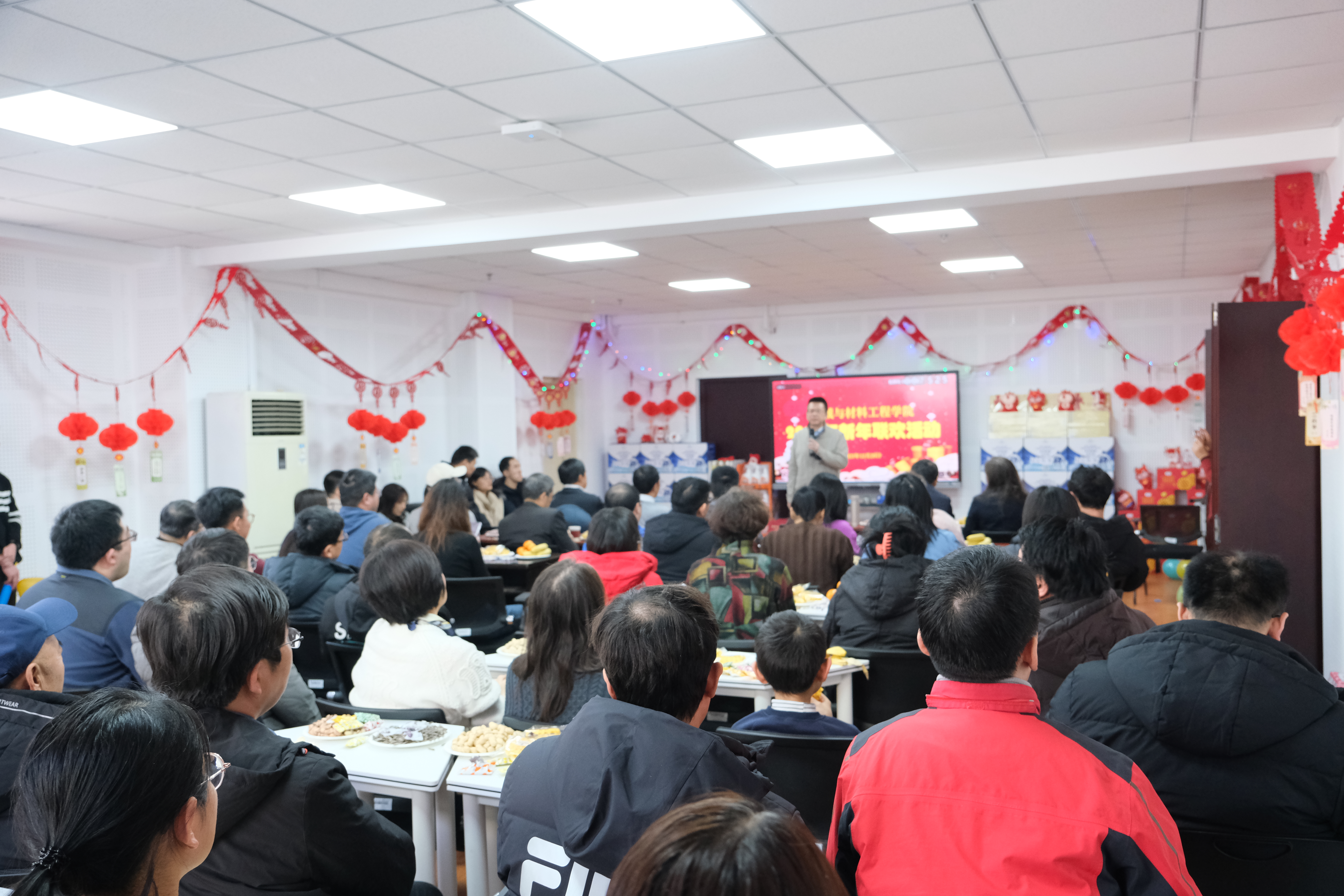 12月29日,best365官方网站登录入口在博才楼202多功能厅举行了2024年迎新联欢活动。学院全体教职工参加了活动。活动现场被火红的拉花和灯笼装点得温馨祥和、暖意融融,洋溢着喜庆的节日气氛。中午12:30,大家欢聚一堂,共迎元旦佳节。