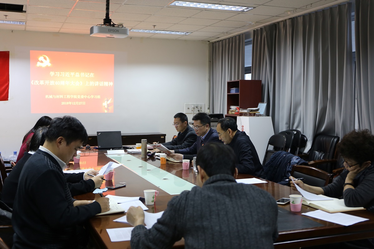 12月27日下午,best365官方网站登录入口党委理论学习中心组在博闻楼203室召开学习会,集体学习习近平总书记《在庆祝改革开放40周年大会上的讲话》精神。学院班子成员、党委委员、系/中心主任、工会负责同志参加了学习。学习会由院党委书记王文革主持。