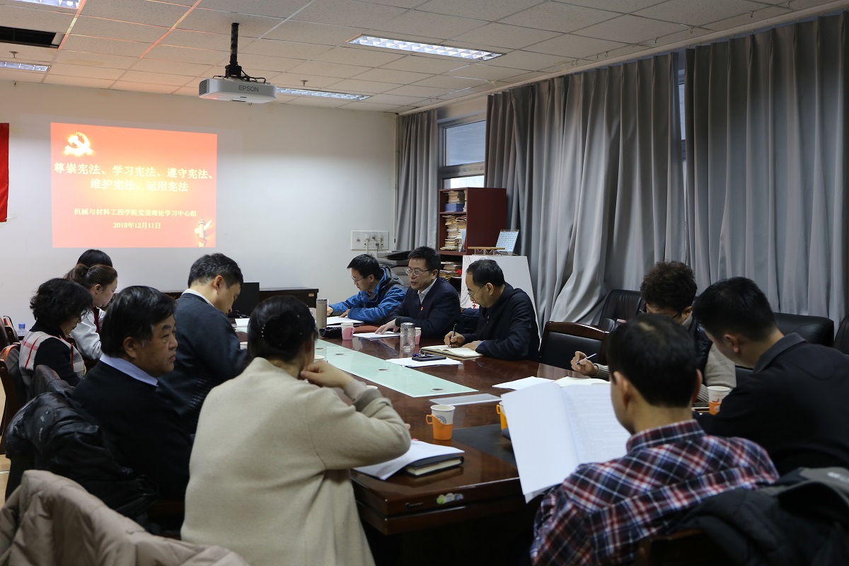 12月11日下午,best365官方网站登录入口党委理论学习中心组在博闻楼203室召开学习会,集体学习以“尊崇宪法、学习宪法、遵守宪法、维护宪法、运用宪法”为主题的宪法精神。学院班子成员、党委委员、系/中心主任、工会负责同志参加了学习。学习会由院党委书记王文革主持。