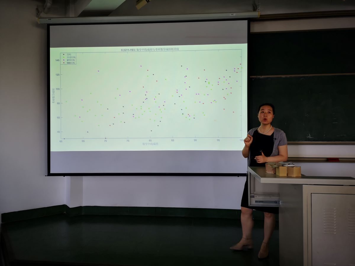 机械系主任刘瑛老师通过11-15级机械类研究生的考研大数据,对2019年的考研情况做了全面的总结。她从绩点与考研成绩、大英成绩与考研英语、大学数学与考研数学、专业课平均成绩与考研专业课成绩等四方面,用详实的数据进行分析,建议同学们要客观评价自己,合理填报志愿,提高考研成功率。“在复习时侯,专业课同样要重视起来,不要等到最后复习。”刘瑛老师这样说,“此外,专业课分数和数学分数是决定总分的首要因素”。同时,刘老师点明了绩点与考研成绩的关系,列举了绩点区间和与之对应的报考院校,通过总结多年来的规律性问题,阐明了考取理想院校的学生所需要具备的条件。刘瑛老师特别强调,绩点所反映的不仅仅是一个人的成绩好坏,更是他学习态度、习惯、方法和毅力的体现。最后,刘瑛老师希望16级考研同学客观评价自我,重视指导老师的意见,建议同学们建立学习小组,互帮互助,互相督促,劳逸结合,确保身心健康。